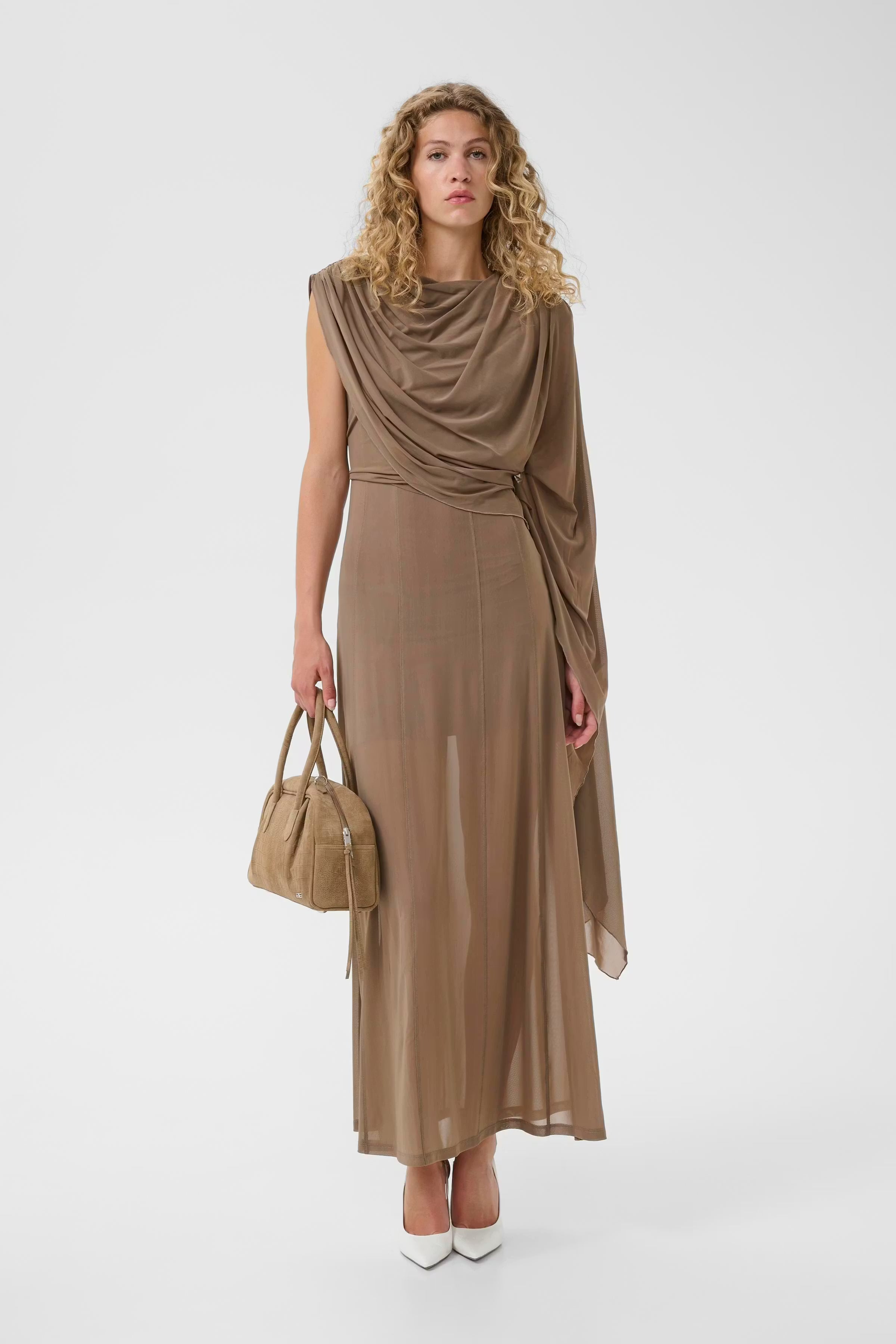 This elegant one-shoulder evening dress features a draped neckline, asymmetric sleeve detail, and a maxi length silhouette. Designed for comfort, it offers a flattering fit ideal for formal occasions and special events. This style is 2 in 1
