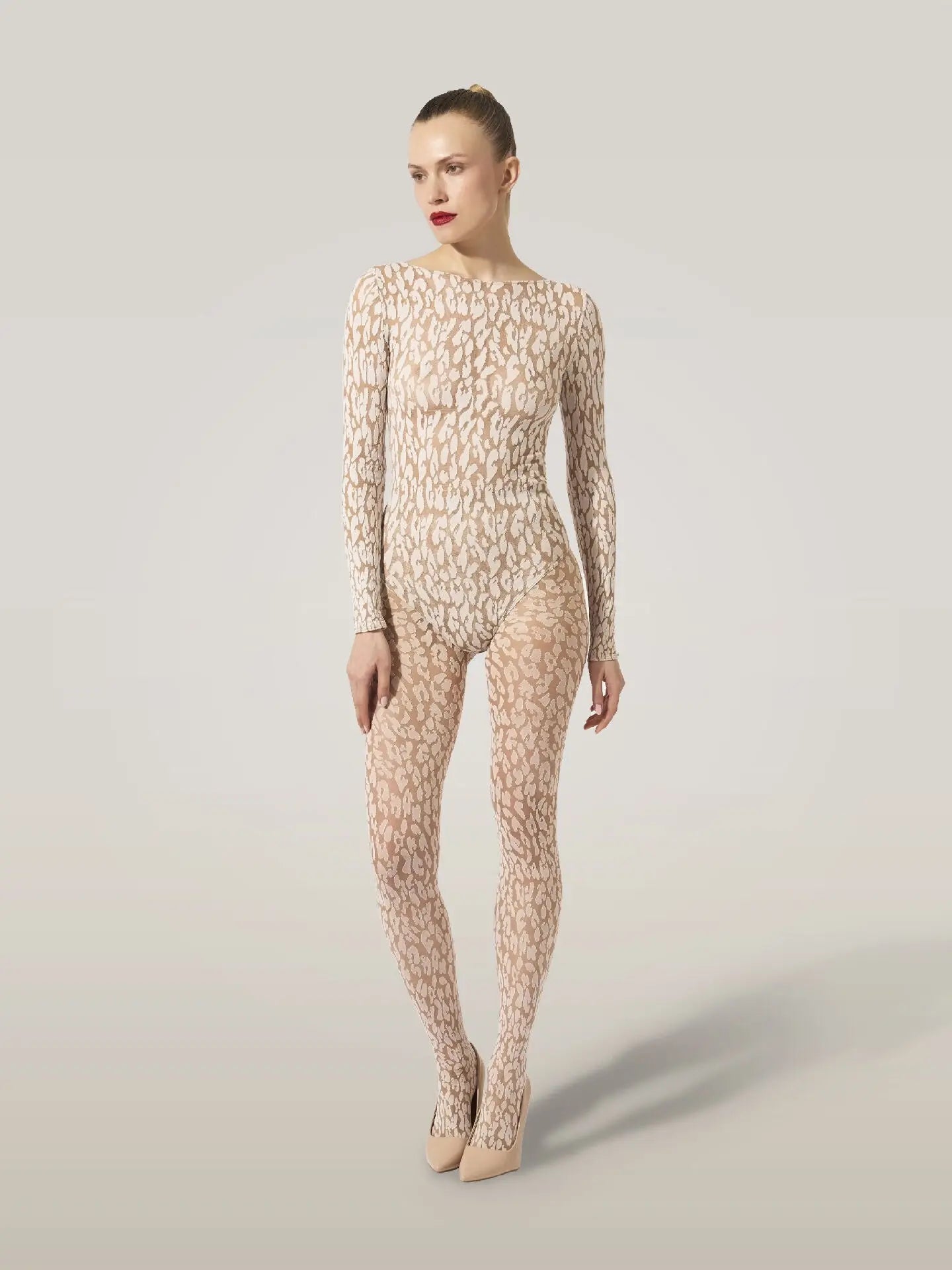 Questo body a manica lunga è un'audace dichiarazione di stile grazie al motivo animalier e al caratteristico mix di texture trasparenti e opache di Wolford. È realizzato con la lavorazione a malia circolare e processi di tintura sostenibili per ottenere un aspetto vellutato e opaco. La discreta scollatura rotonda e la chiusura con automatici completano il look.