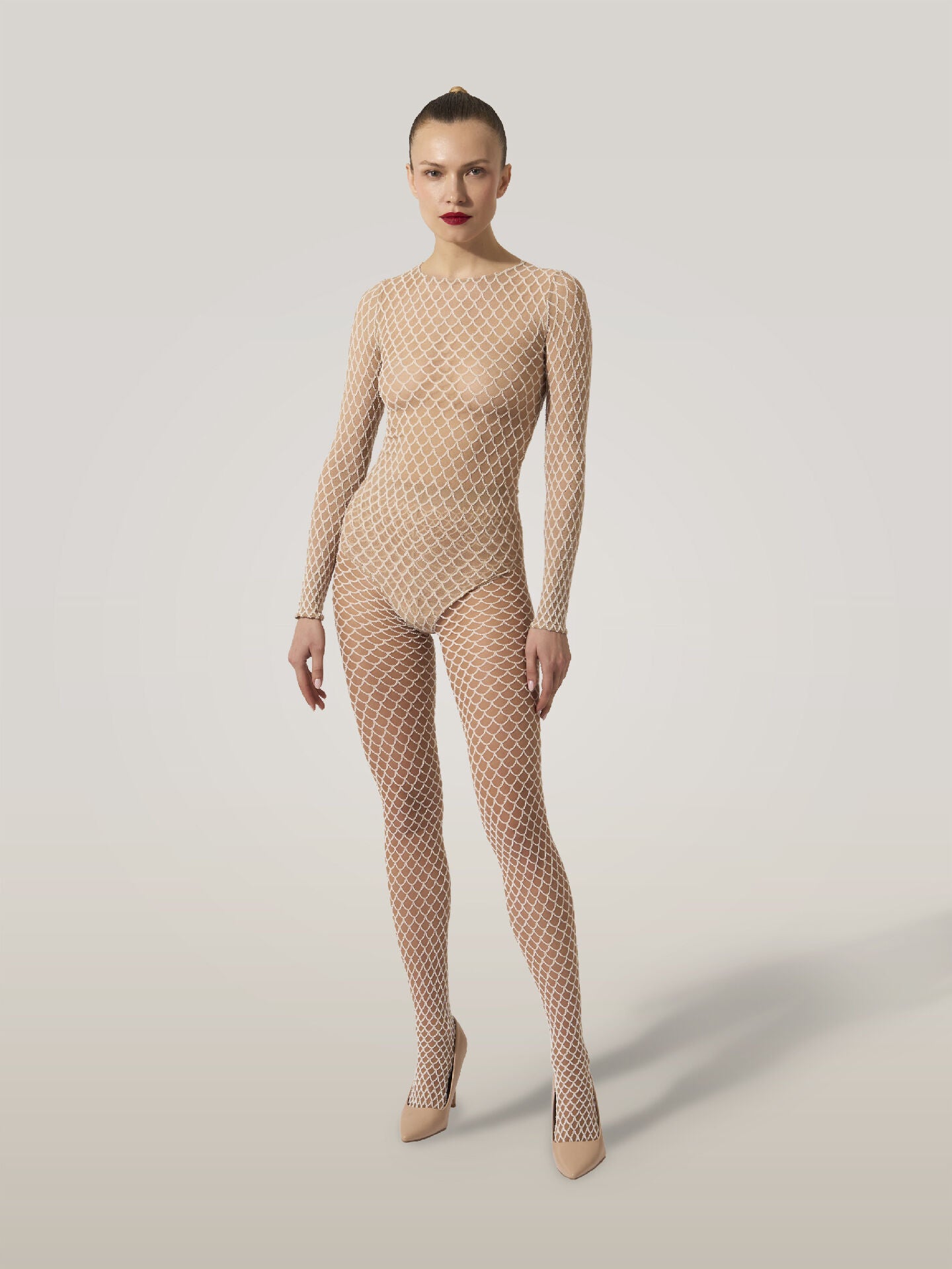 Wolford Velvet Net Illusion String Body Fairly Light/White