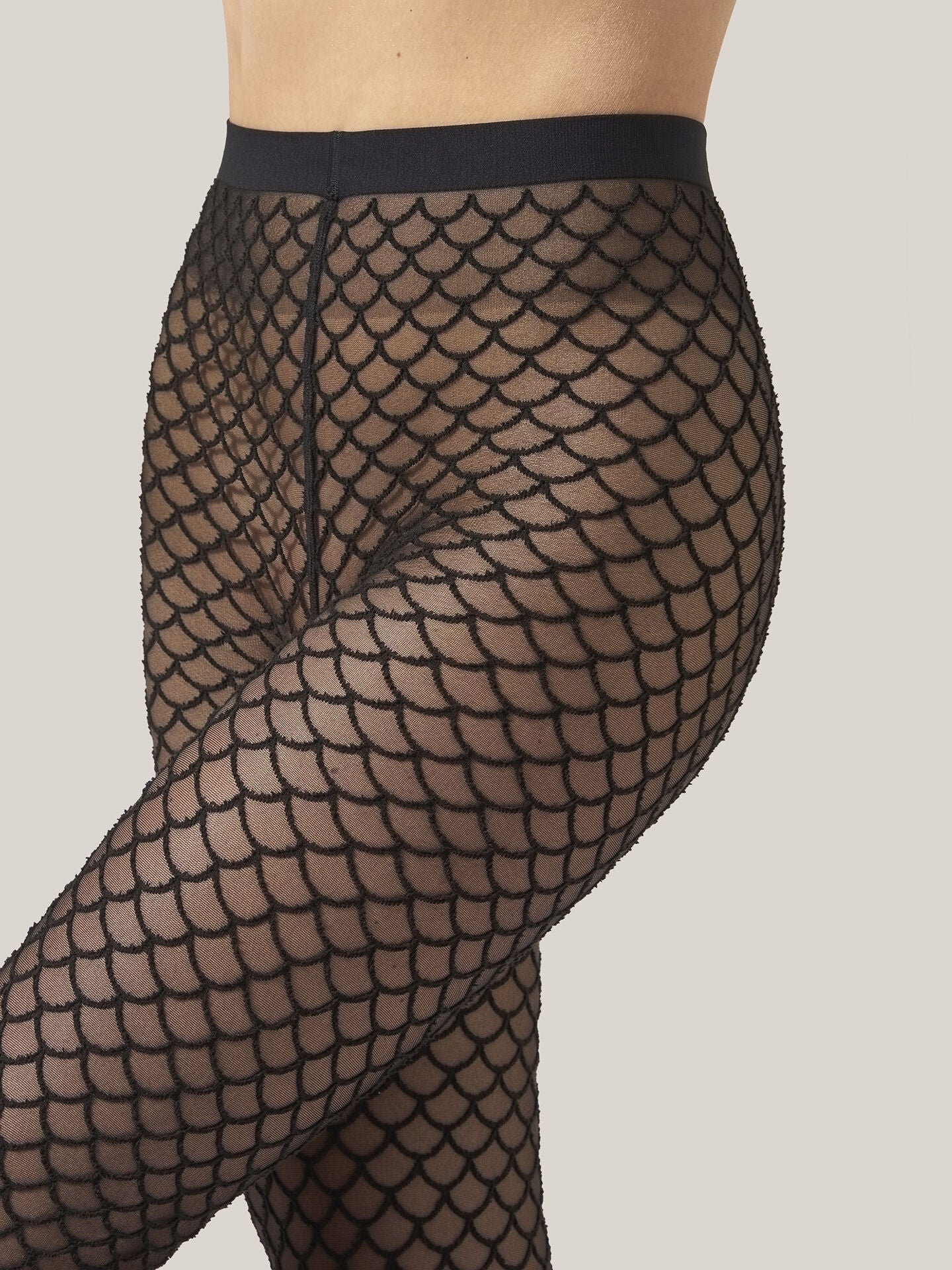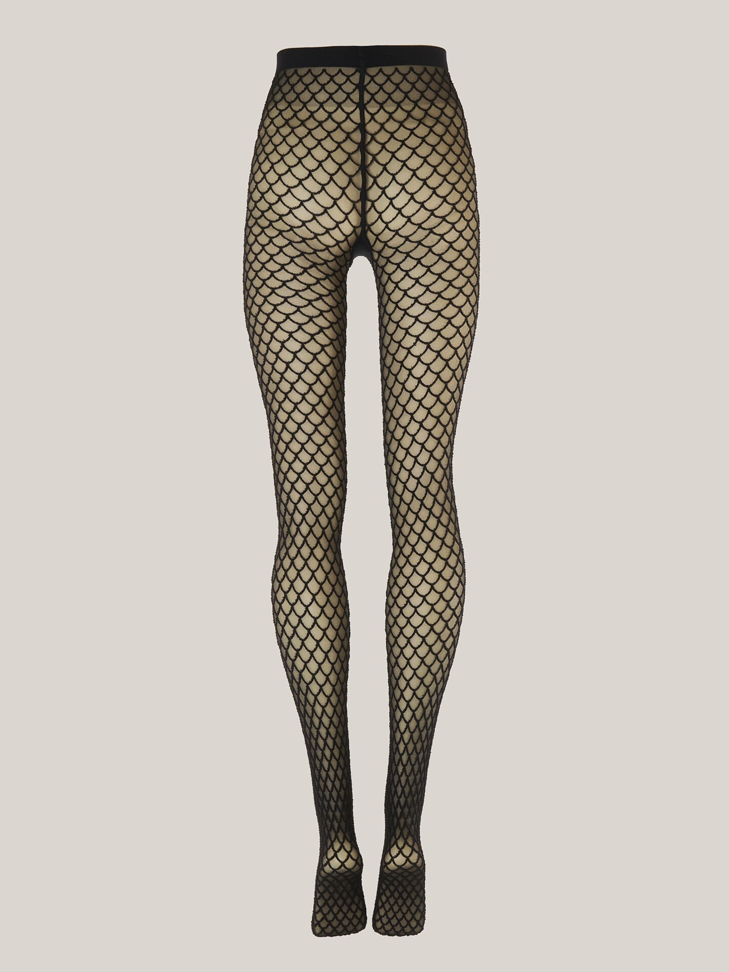 Espressione essenziale dello stile e della maestria Wolford, i collant coniugano una intricata fantasia grafica alla particolare lavorazione del brand che crea capi anti-smagliatura. L'impeccabile finitura liscia e opaca è abbinata a inserti a rete sulla punta, che assicurano una tenuta salda. Il morbido cinturino elastico si arricchisce di un discreto dettaglio logato.