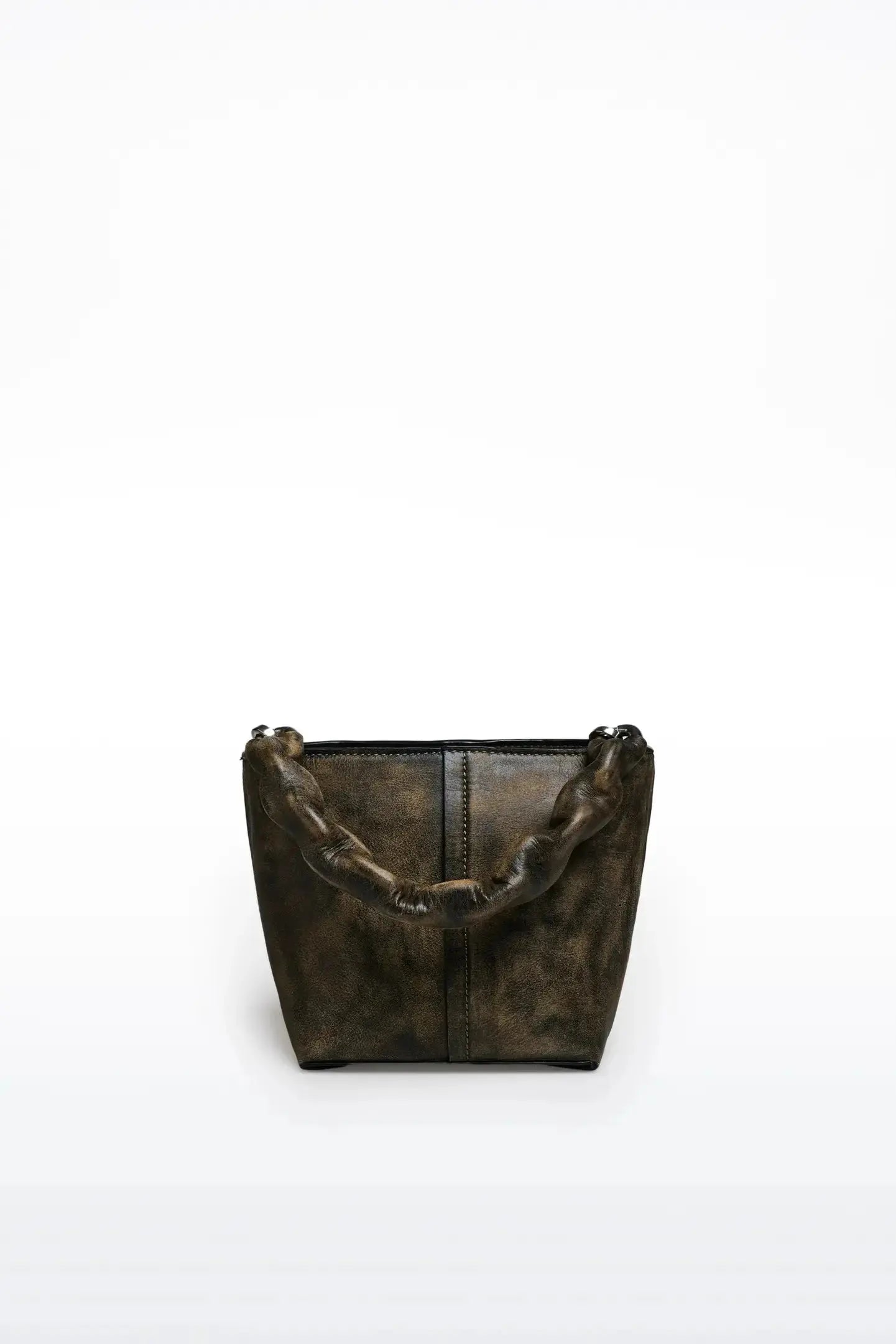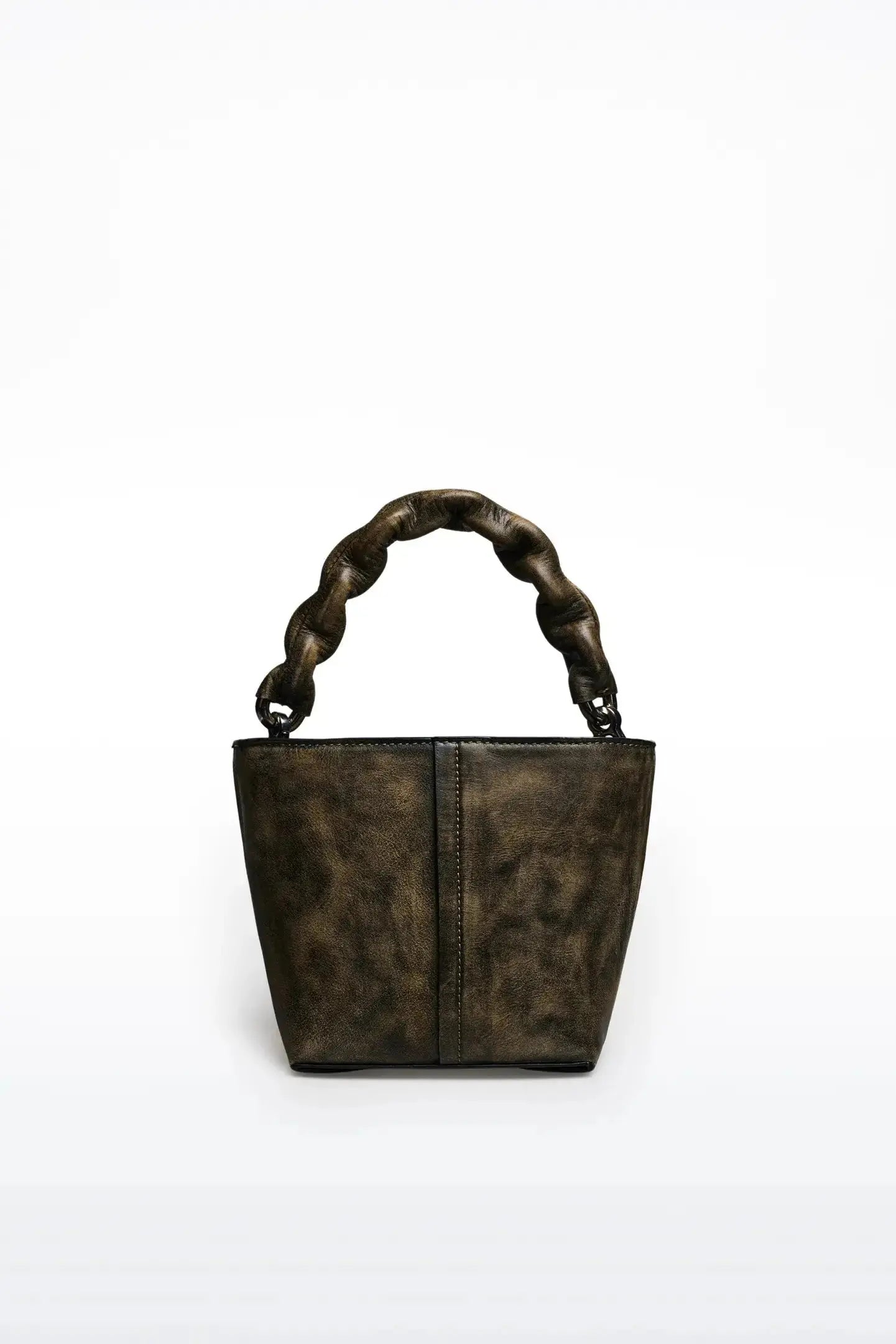 Lauren Bag è una piccola borsa a mano, squisitamente realizzata in pelle di agnello con una silhouette moderna ma elegante. La struttura a forma di secchiello è impreziosita da un caratteristico manico a catena rivestito in pelle. È inclusa una tracolla in pelle staccabile per molteplici opzioni di trasporto.