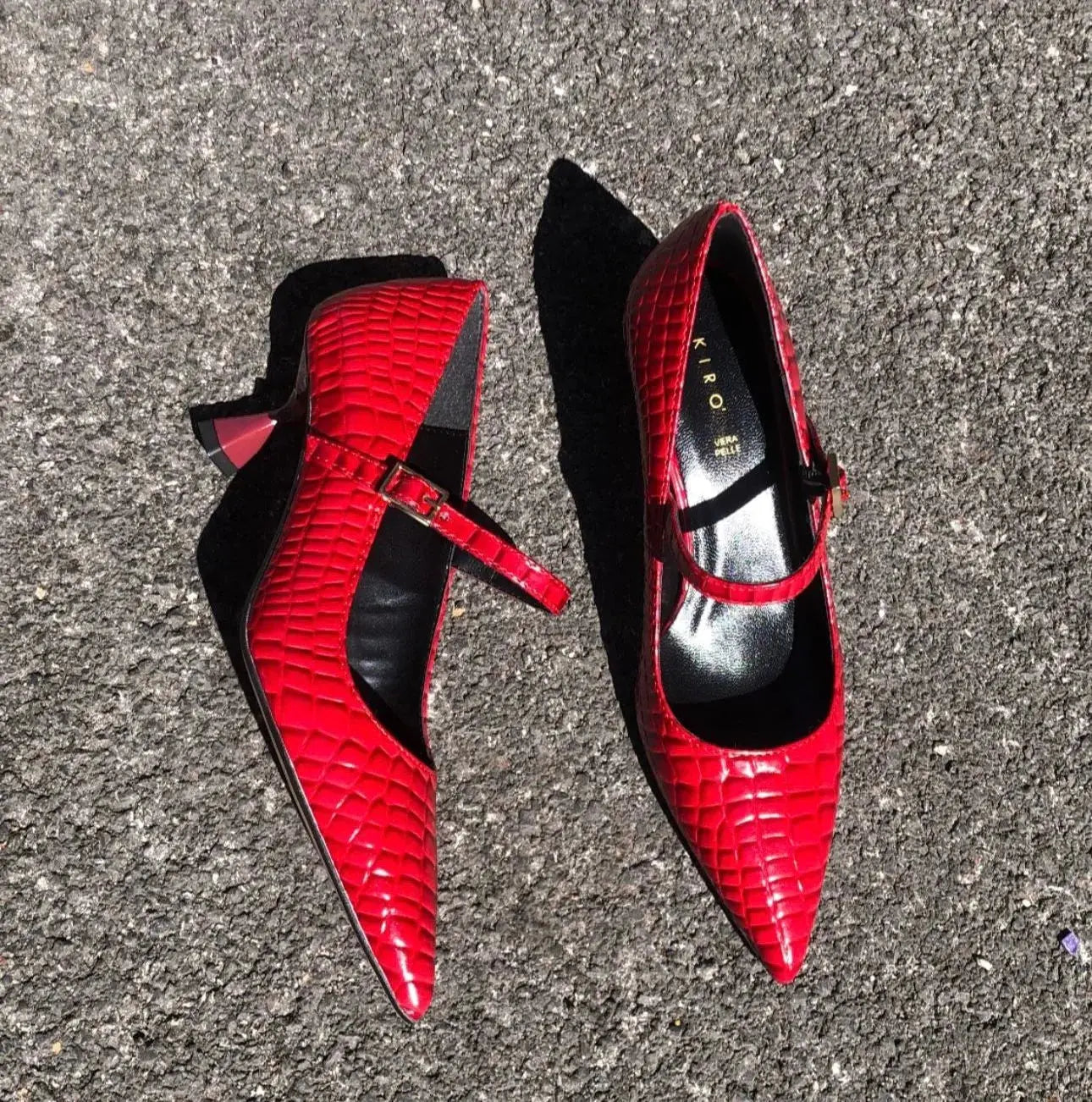 Scarpe décolleté Kirò in pelle. Tacco a clessidra 50mm. Cinturino collo piede. Made in Italy.