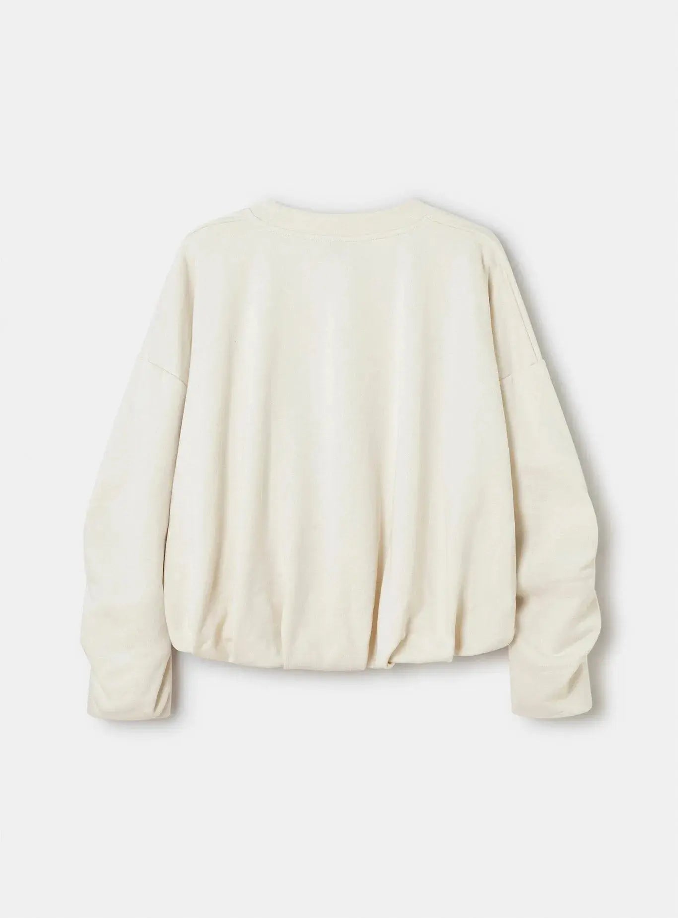 Felpa Laagam girocollo oversize color ecru. Logo ricamato in rosso sul davanti. Maniche e vita a sbuffo.