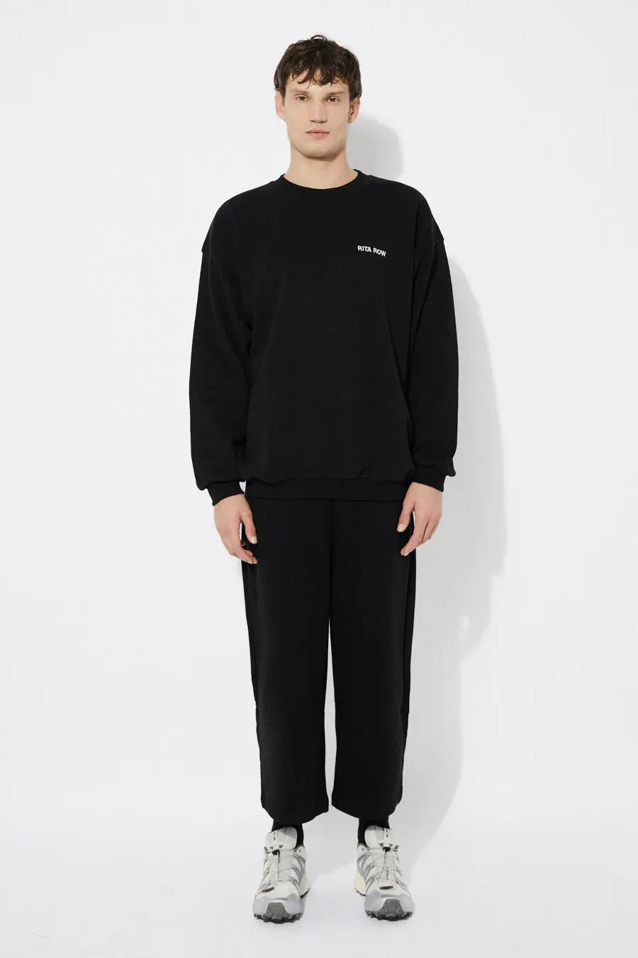 Felpa Rita Row Lucas nera. Felpa oversize in cotone biologico con interno morbido spazzolato e spalle scese. Collo, polsini e orlo a costine. Dettaglio logo ricamato.