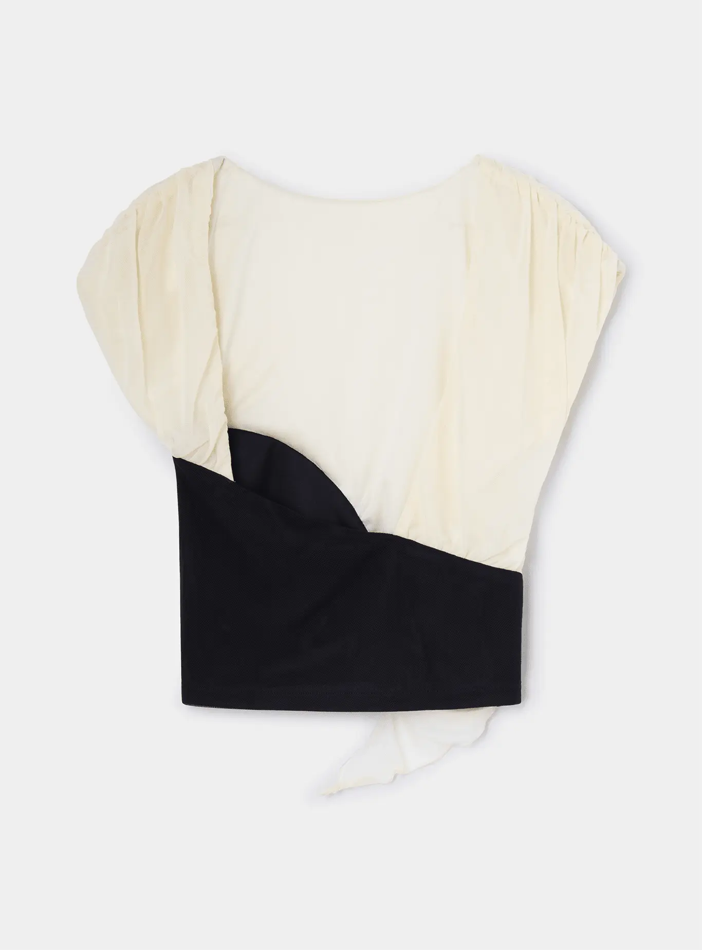Top Laagam elasticizzato drappeggiato con scollo rotondo e schiena scoperta. Realizzato in tessuto con arricciatura asimmetrica sul davanti. Foderato.