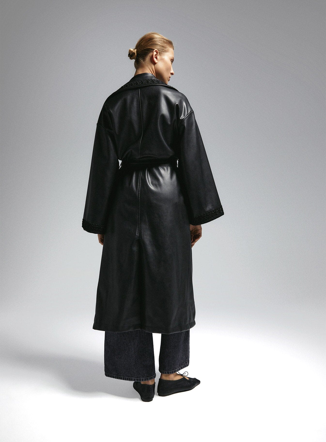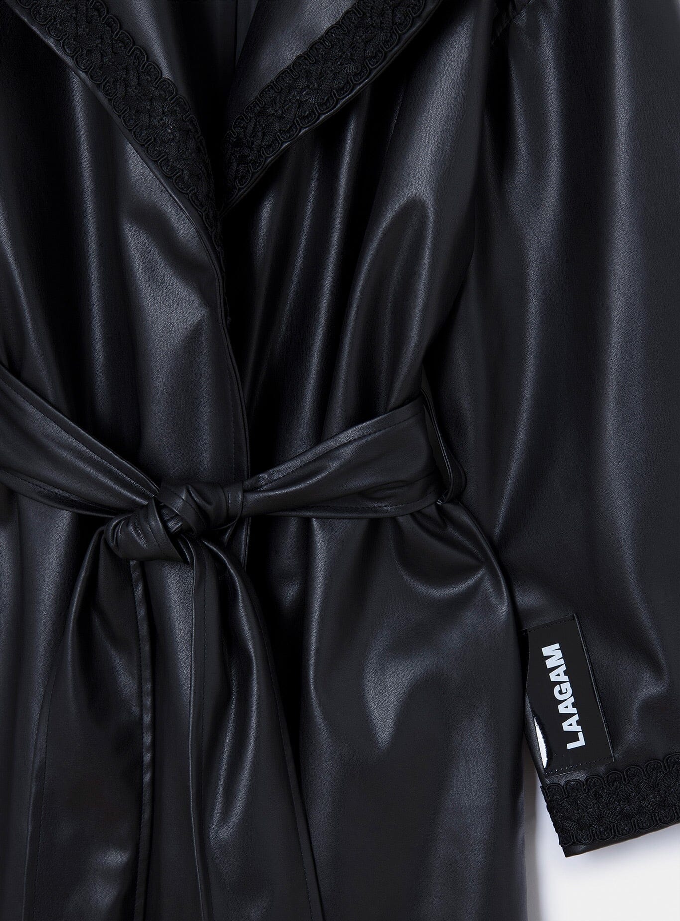 Trench lungo Laagam oversize in similpelle con collo a revers e maniche lunghe. Rifiniture su revers e polsini. Tasche laterali. Cintura in similpelle. Spacco sull'orlo.