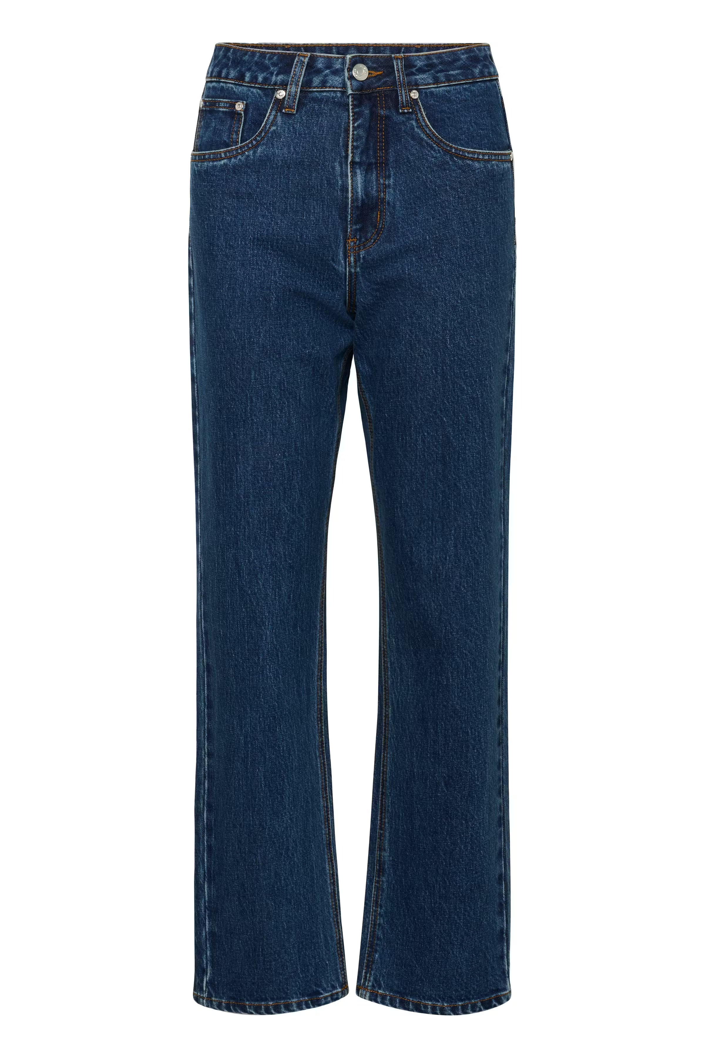These straight leg jeans offer a versatile fit and timeless style, featuring a high-rise waist and classic five-pocket design. Comfortable and easy to pair with various tops, ideal for everyday wear or casual outings.