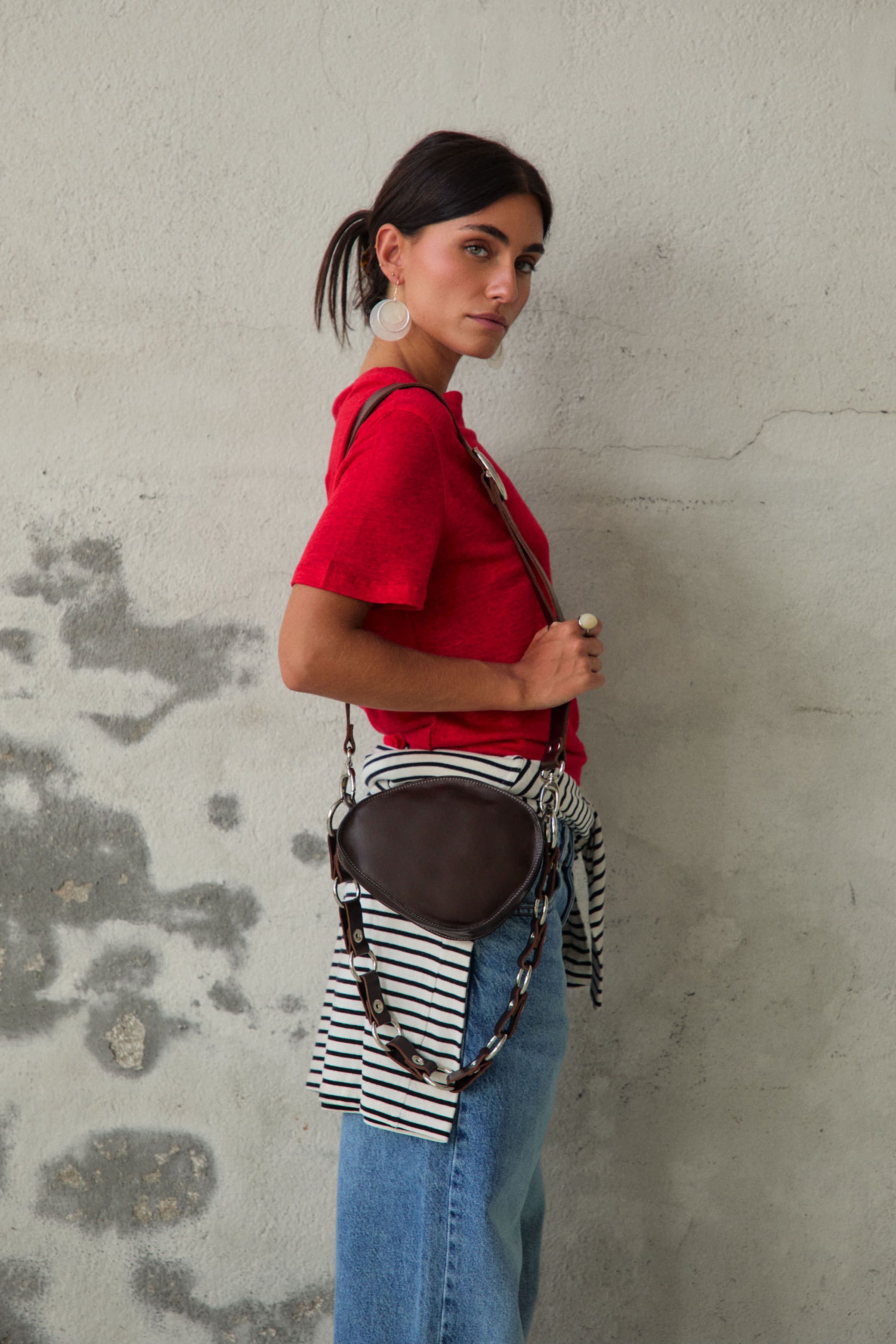Choose between a plain chain or a long circular chain. Wear it on your shoulder or across your body.