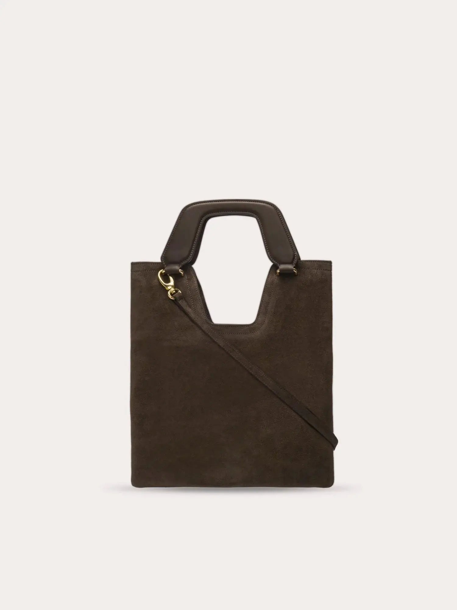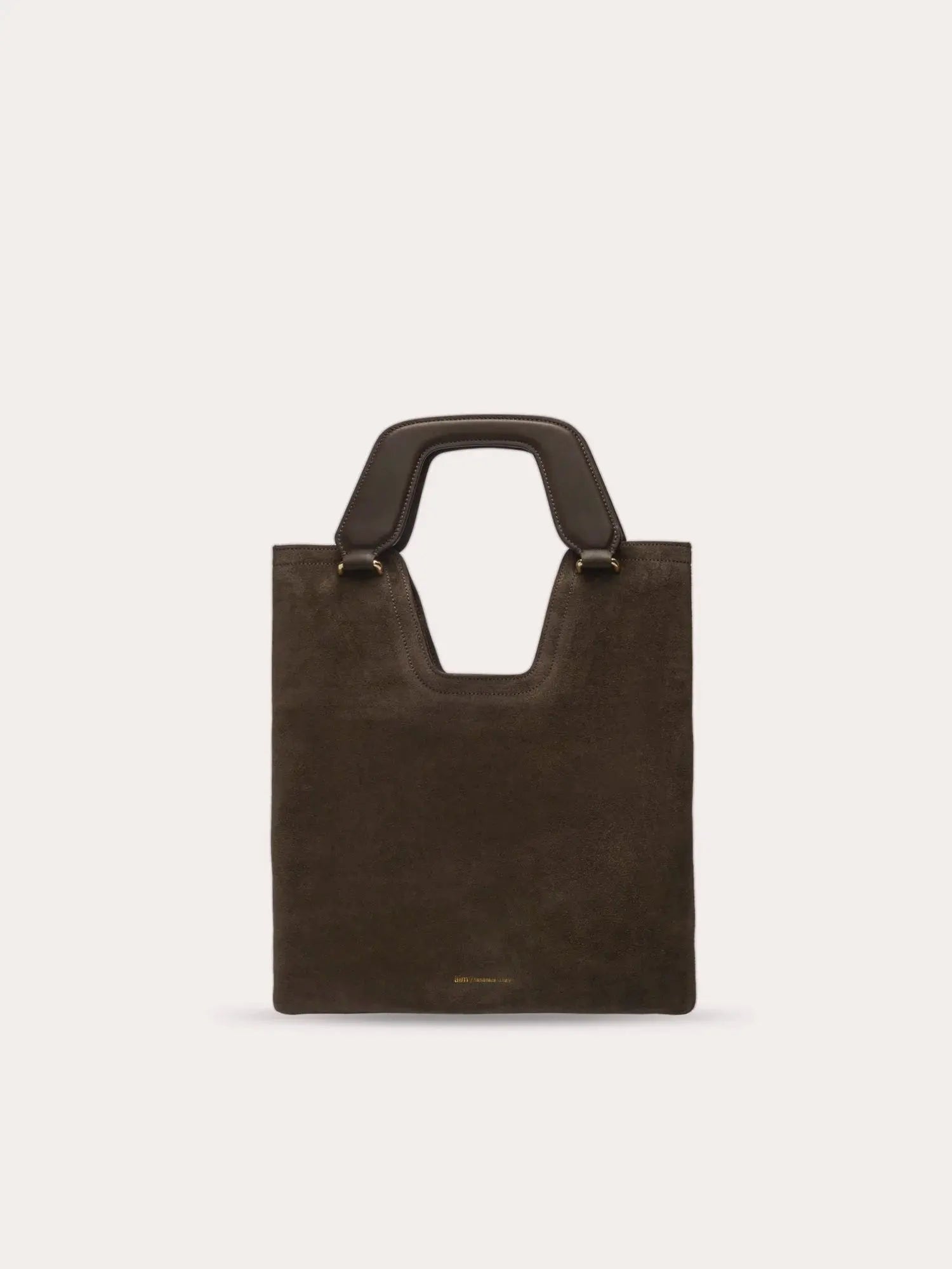 Aim Handmade in Italy shopping bag crafted in suede calf leather with smooth calf trim and lined with cotton fabric. 100% Made in Italy.