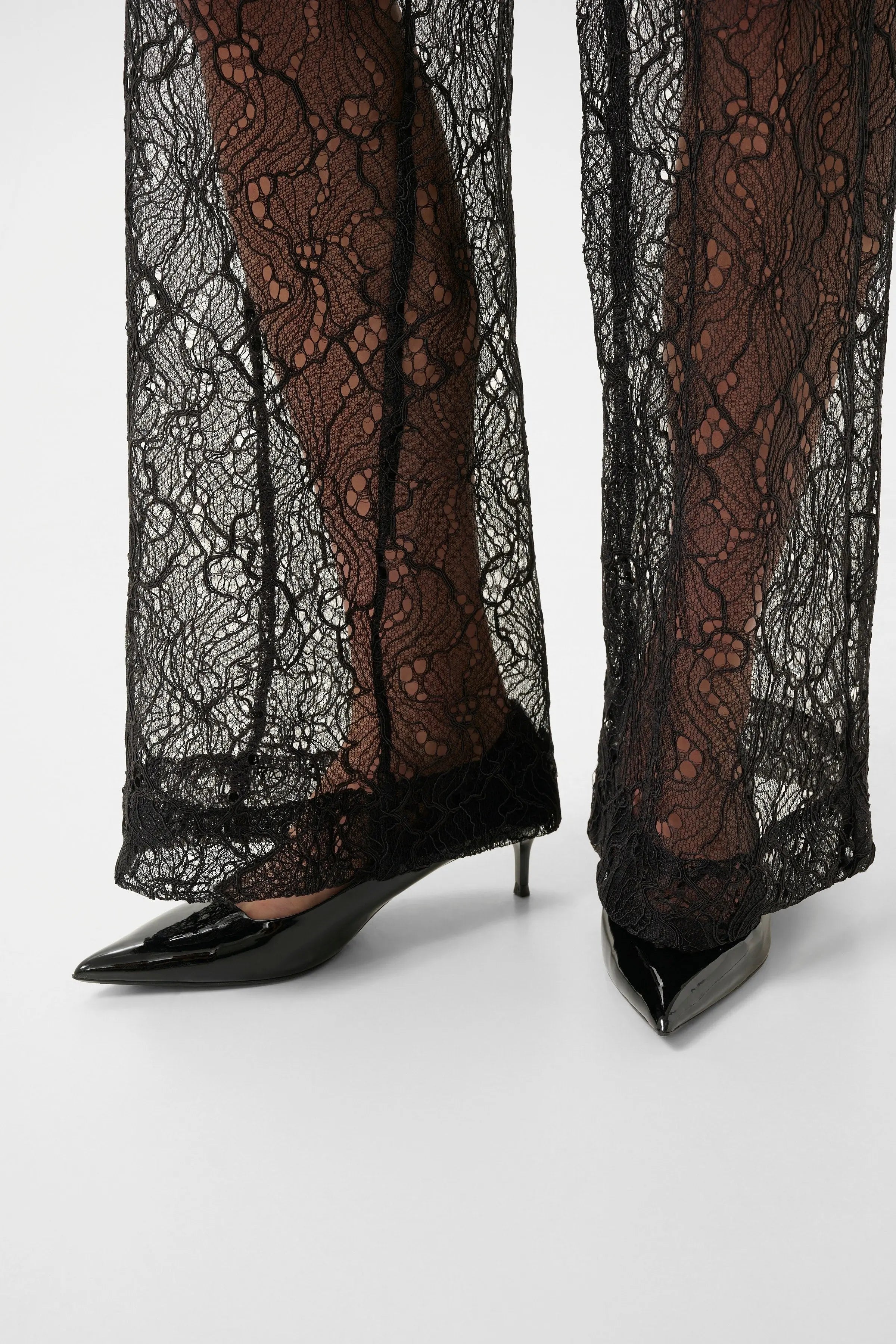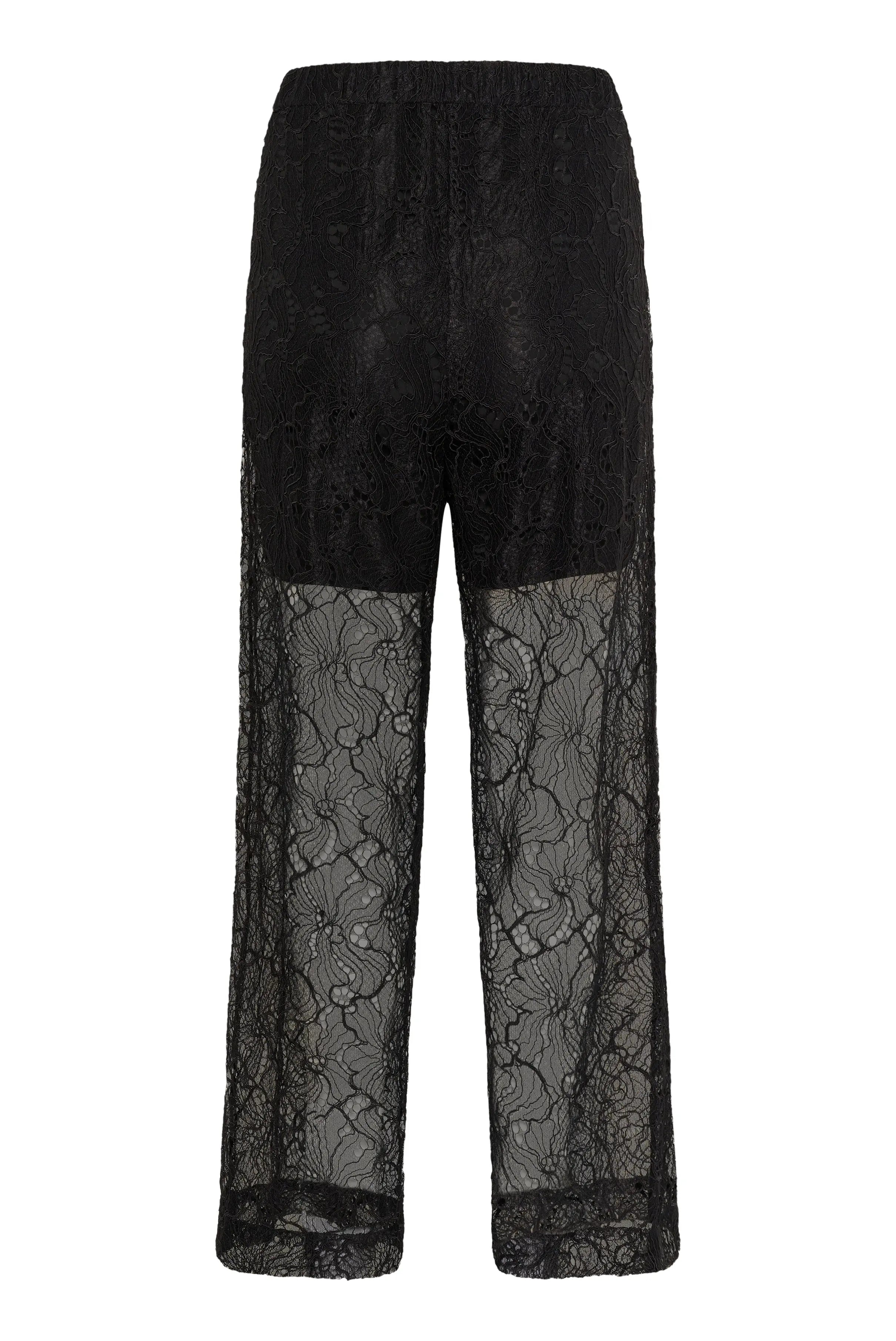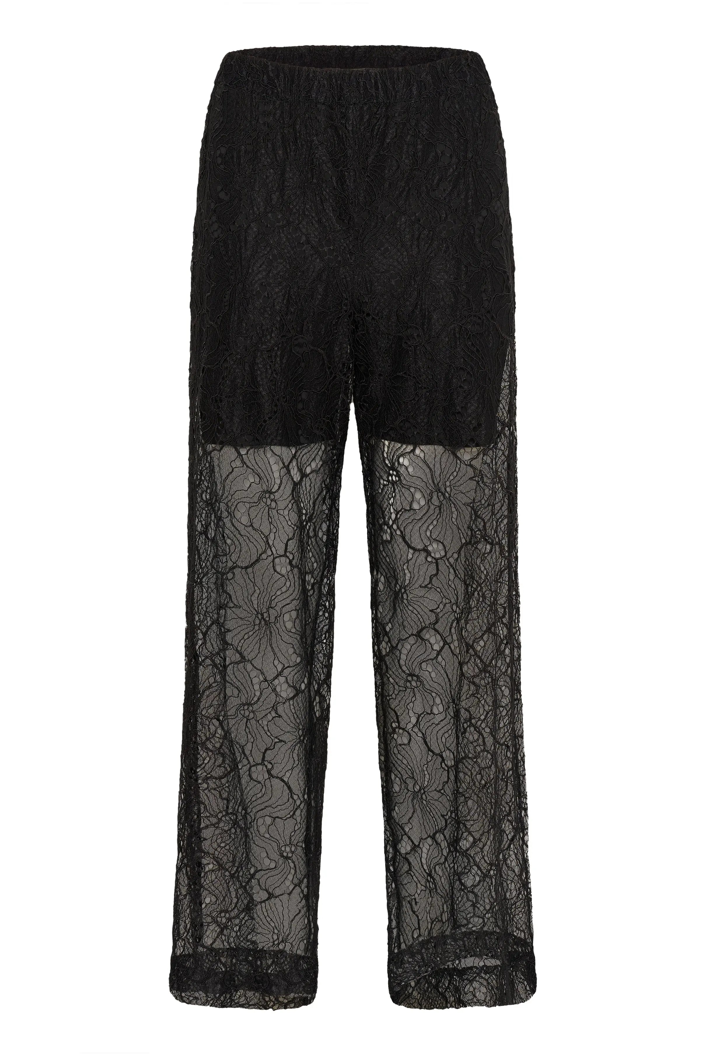 Gestuz elegant lace trousers with an elastic waist and straight legs. The sheer lace layer adds a sophisticated look, while the inner shorts ensure comfort.