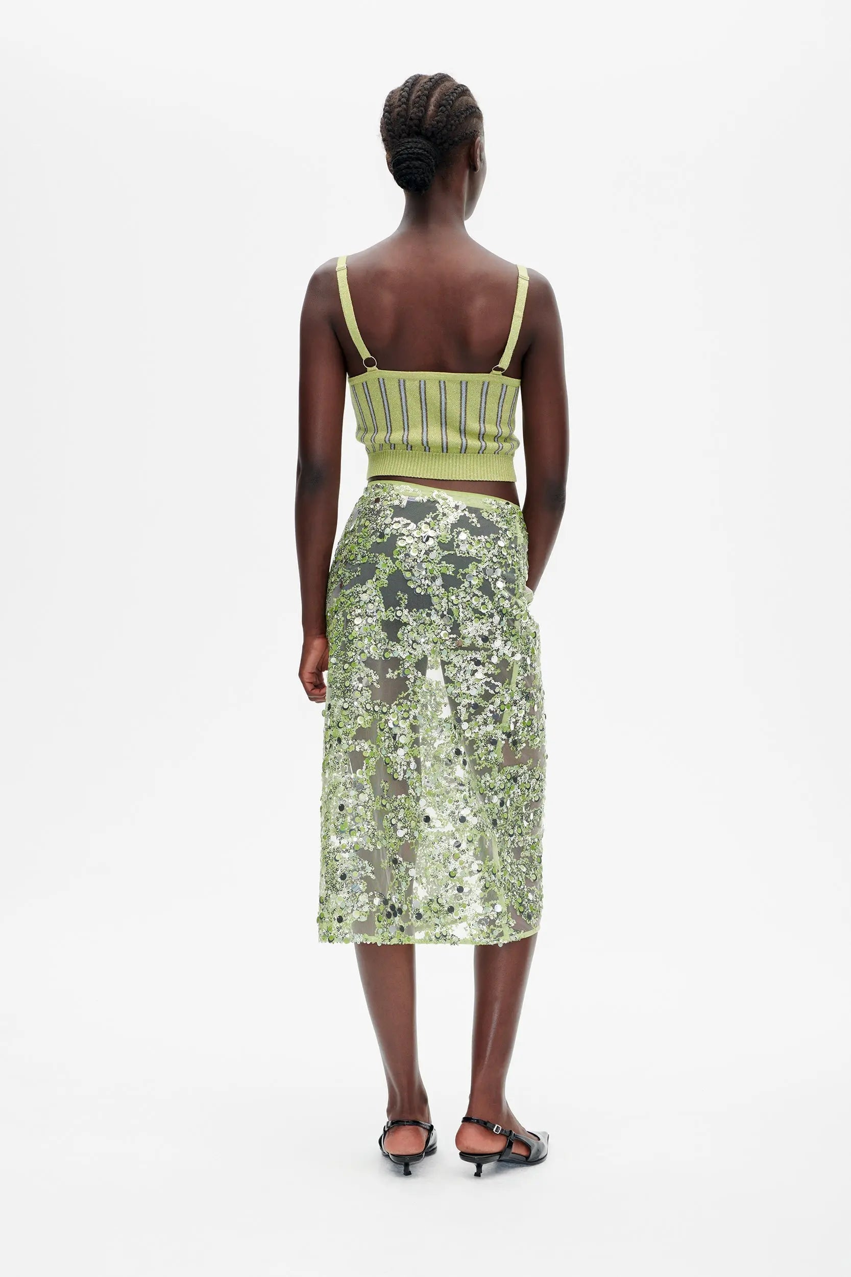The Cypre Top is a stylish cropped top that blends minimalism with a touch of glamour. Featuring a V-neckline and thin adjustable straps, it offers a customizable, flattering fit. The ribbed hem adds structure, while the metallic threading throughout creates a subtle shimmering finish, making it perfect for both casual and elevated looks.